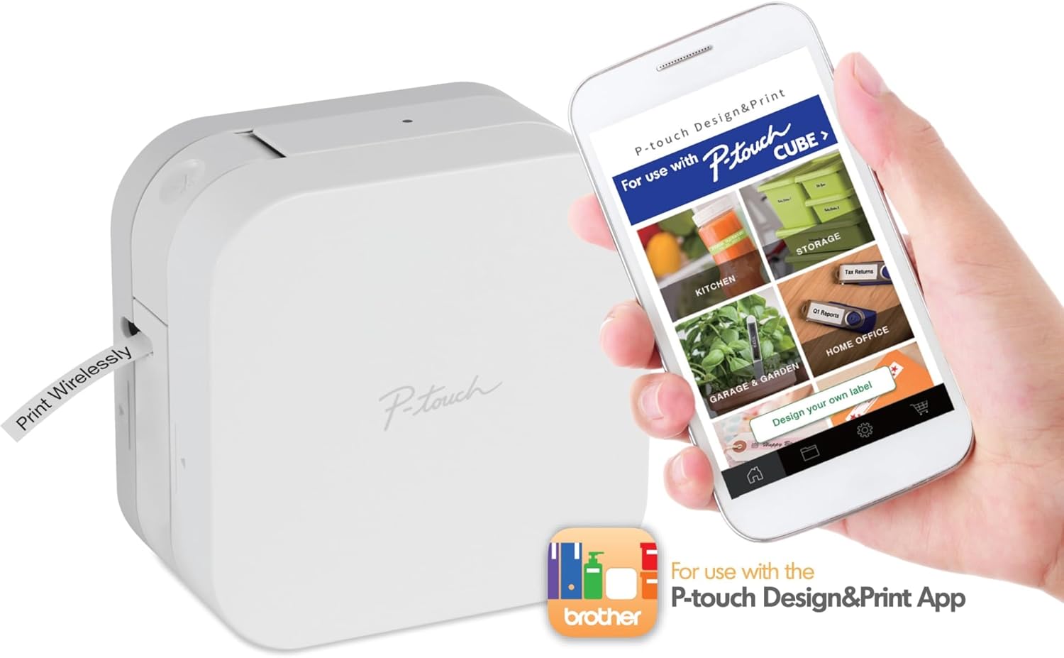Brother P-Touch Cube Label Maker, Thermal, Inkless Printer for Home & Office, Portable Lightweight, Smartphone Bluetooth Wireless Compatible, Multiple Templates for iPhone & Android, PTP300BT, White