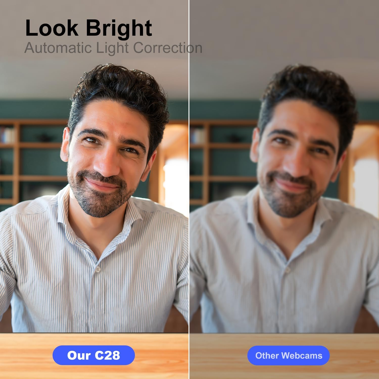 C28 1080P Webcam with Privacy Cover and Tripod Stand, PC Camera with Noise-Canceling Mic, Computer Camera with Auto Light Correction,Plug and Play, Web Camera for Streaming, Zoom/Facetime