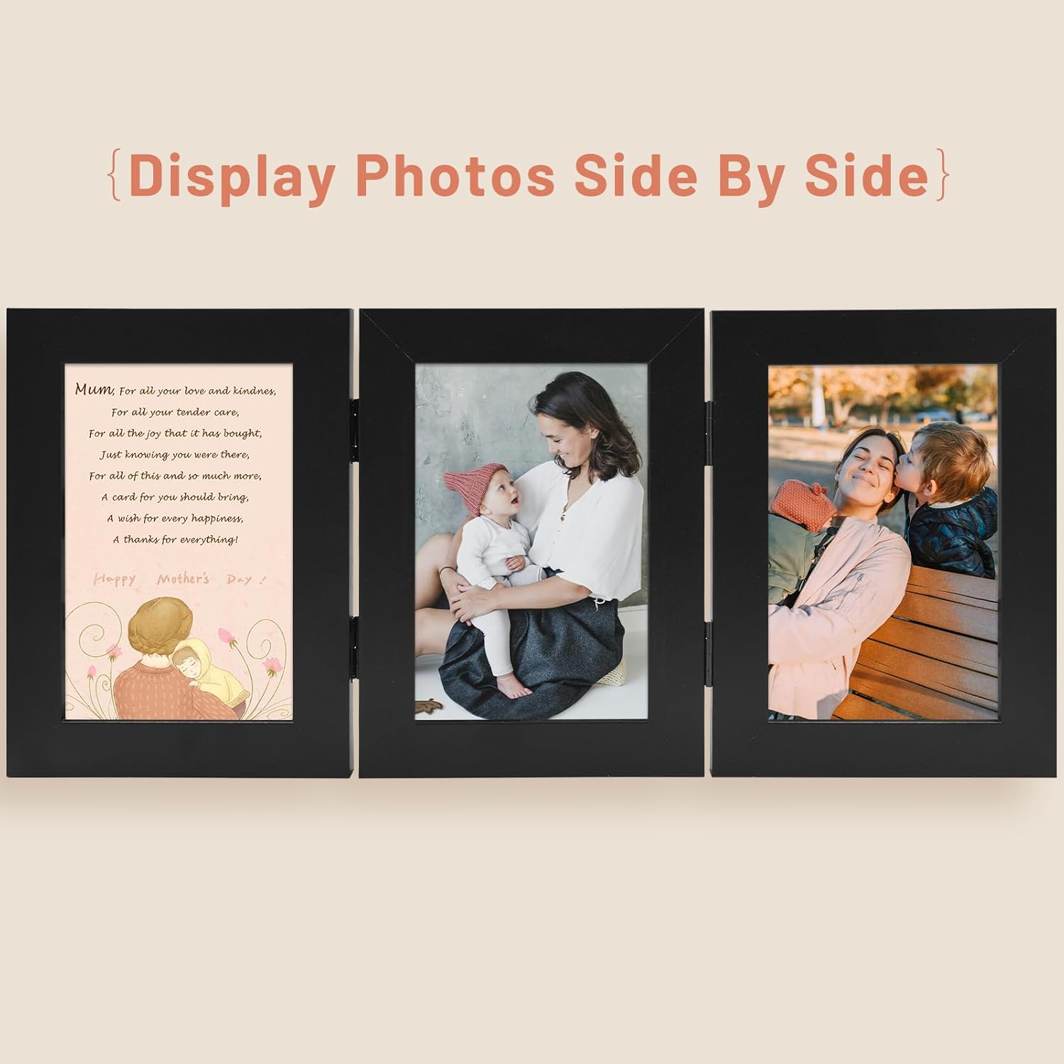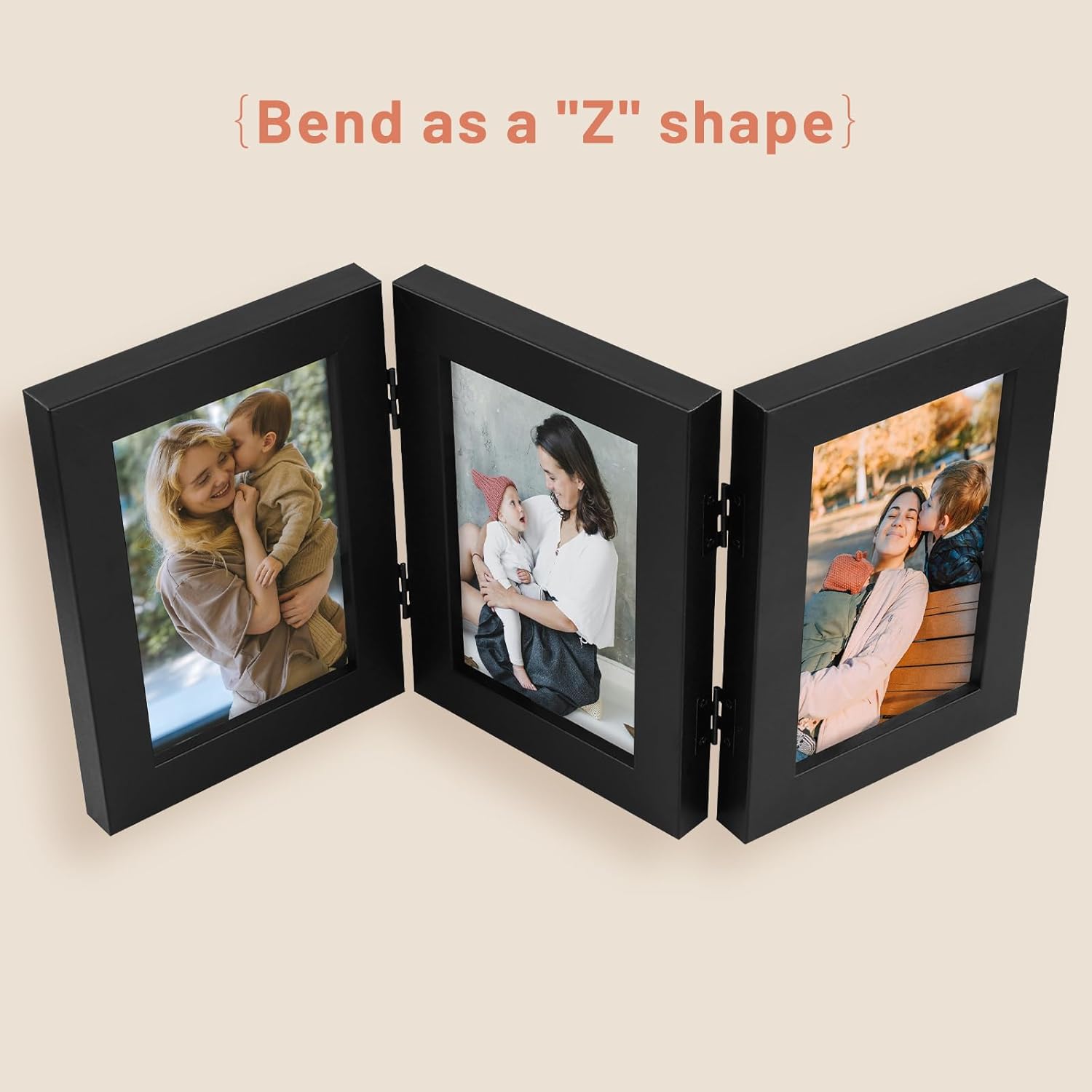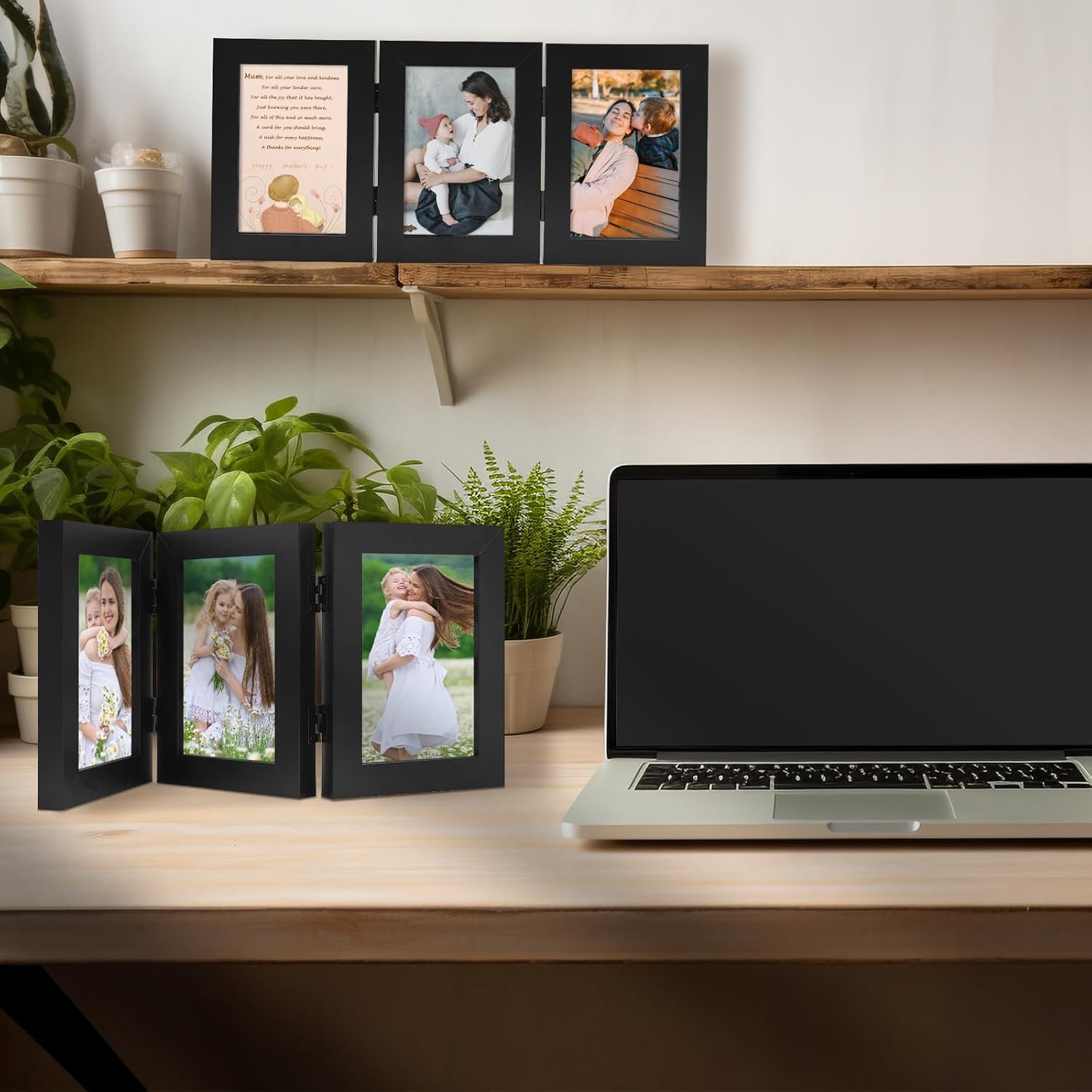 Golden State Art, 4×6 Three Picture Frame Trifold Hinged Photo Frame with 3 Openings, Desk Top Family Picture Collage, with Real Glass (4×6 Triple, Black, 1-Pack)